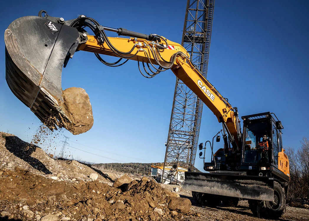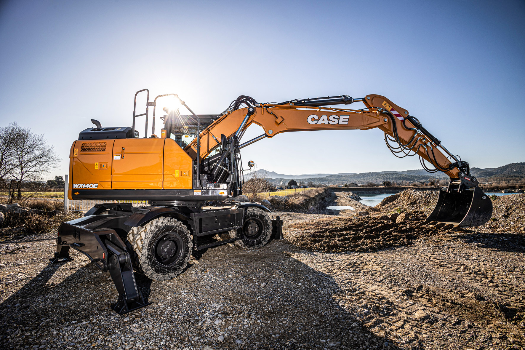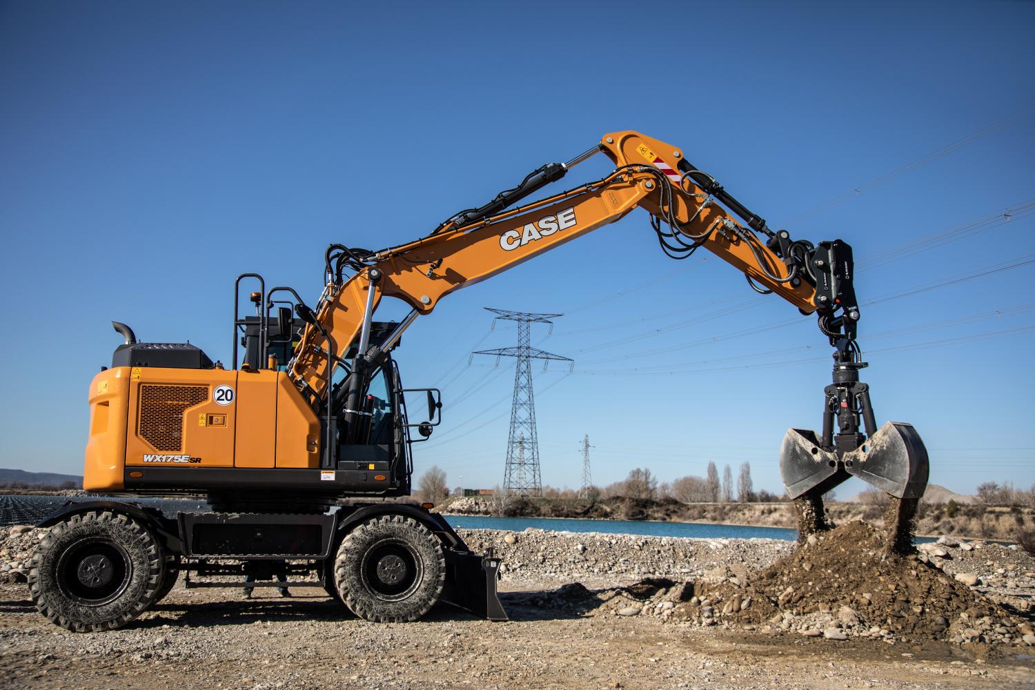 Kolesové rýpadlo série E so skrátenou kormou. Dodáva sa výhradne s dvojdielnym kĺbovým výložníkom. Rypadlo poháňa motor Cummins 4.5: vodou chladený, turbodúchadlom prepĺňaný radový štvorvalec, ktorý spĺňa emisné normy Stage V. Štandardná dĺžka výložníka 2,34 m, objem lyžice 0,58 m3. Možná konfigurácia so stabilizátormi a dozérom.